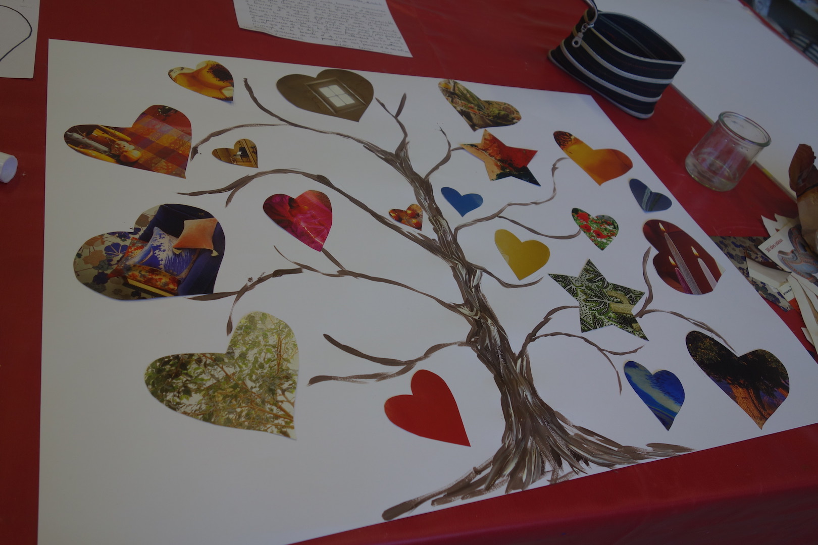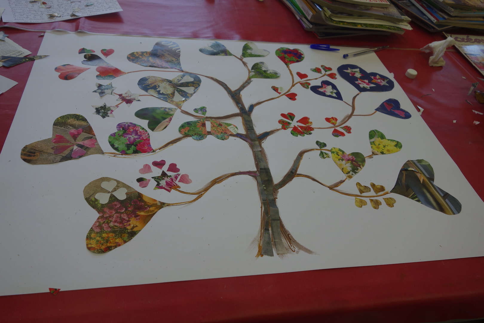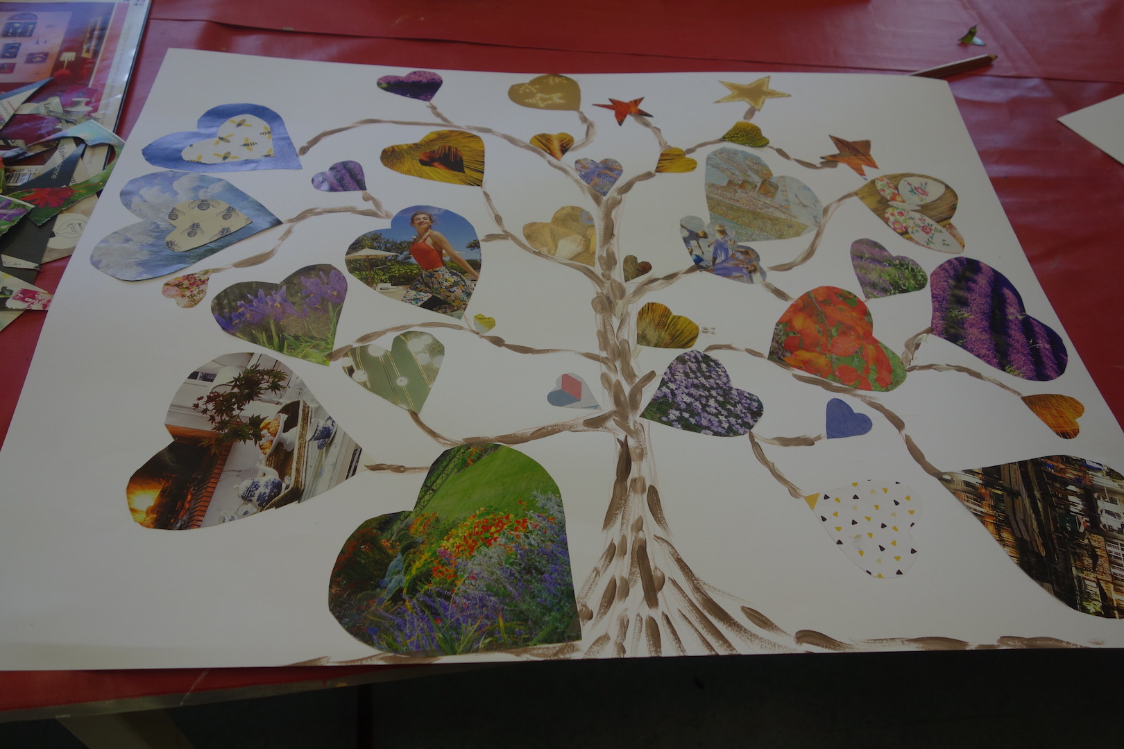Séance du 11 janvier 2025. Le thème : réaliser un arbre à voeux à l’aide de divers coeurs.