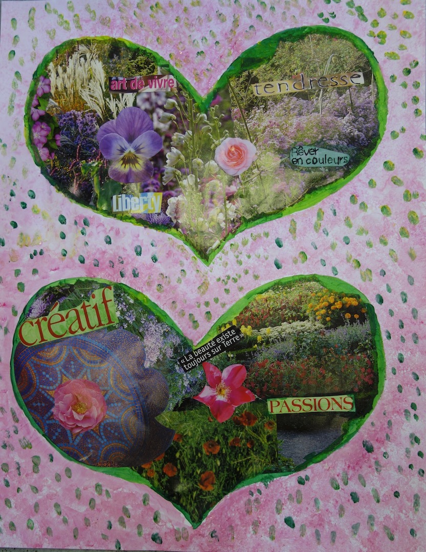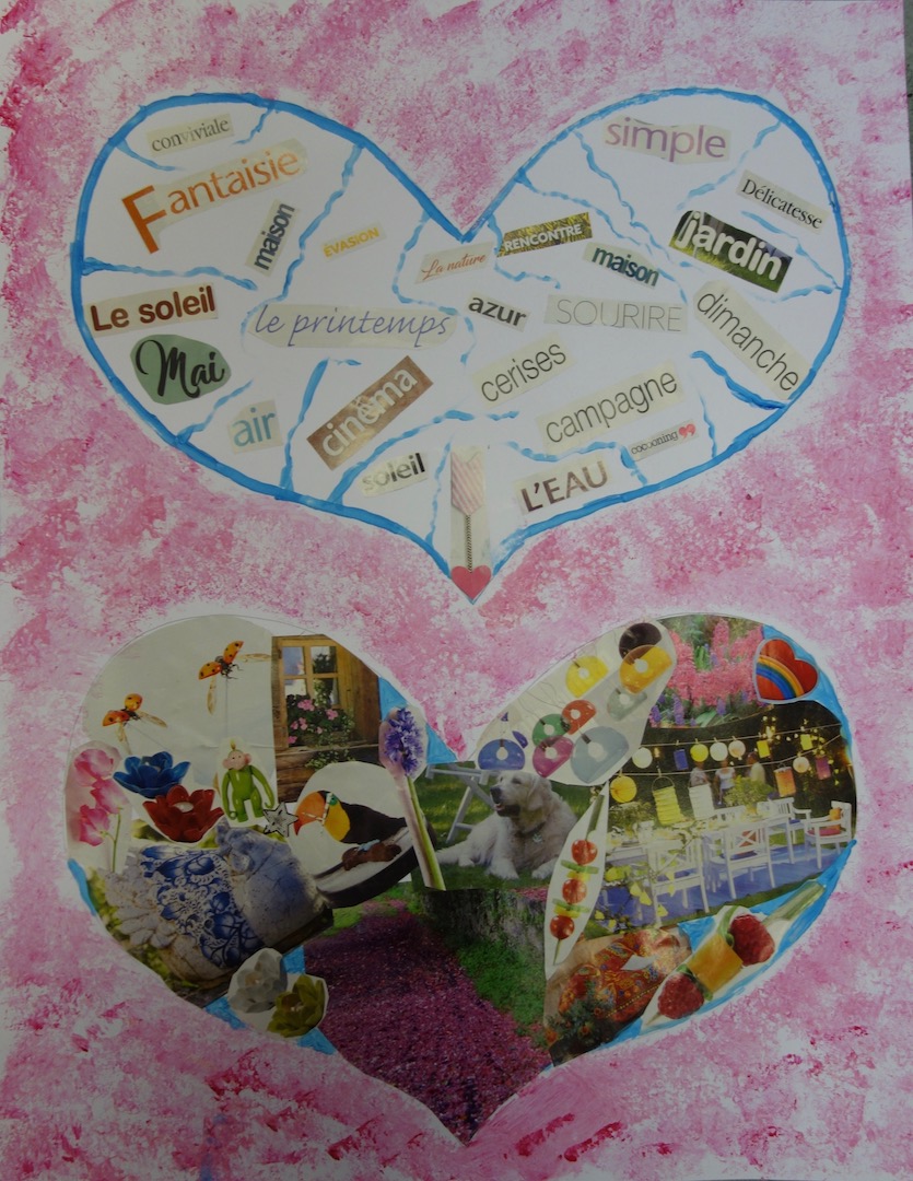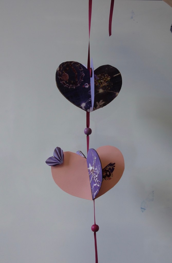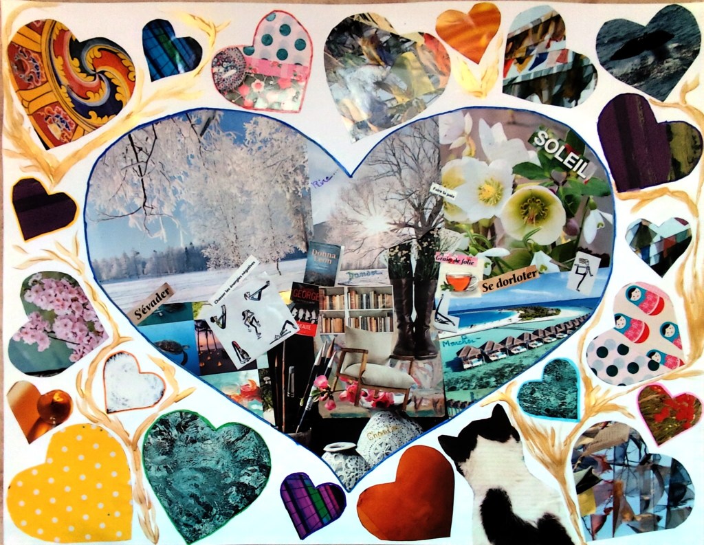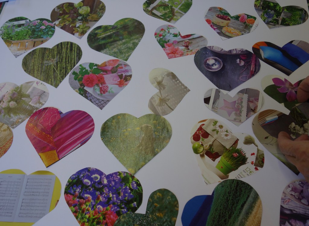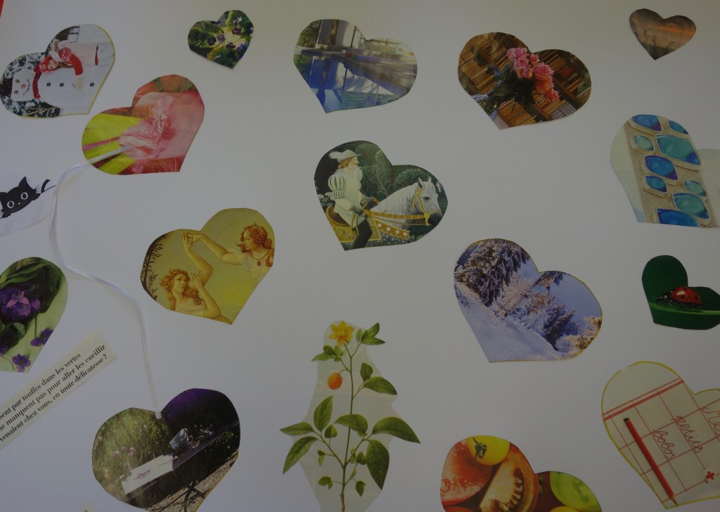 Réalisations du 04 février 2023 dont le thème était « choix d’images et mots à disposer dans deux grands coeurs