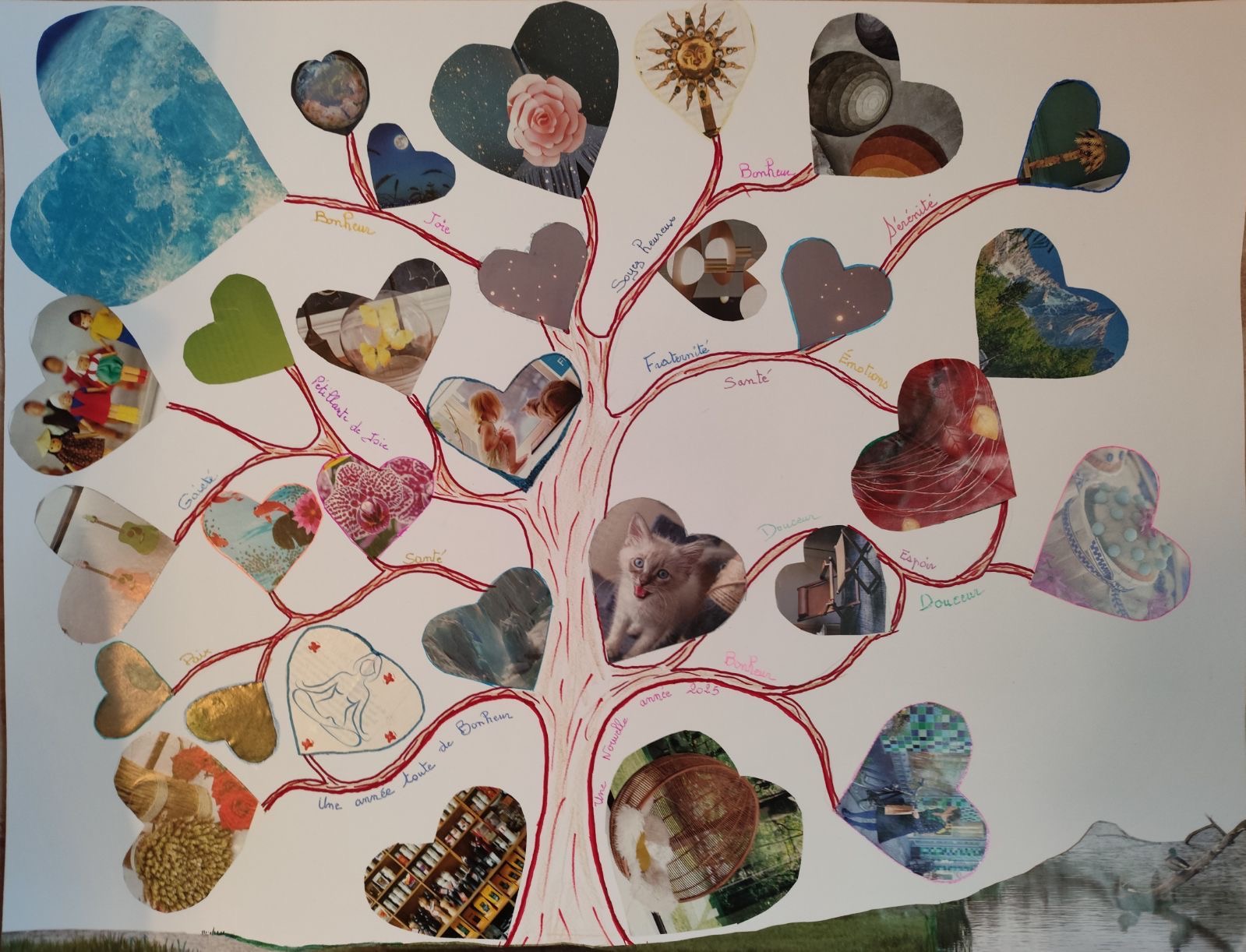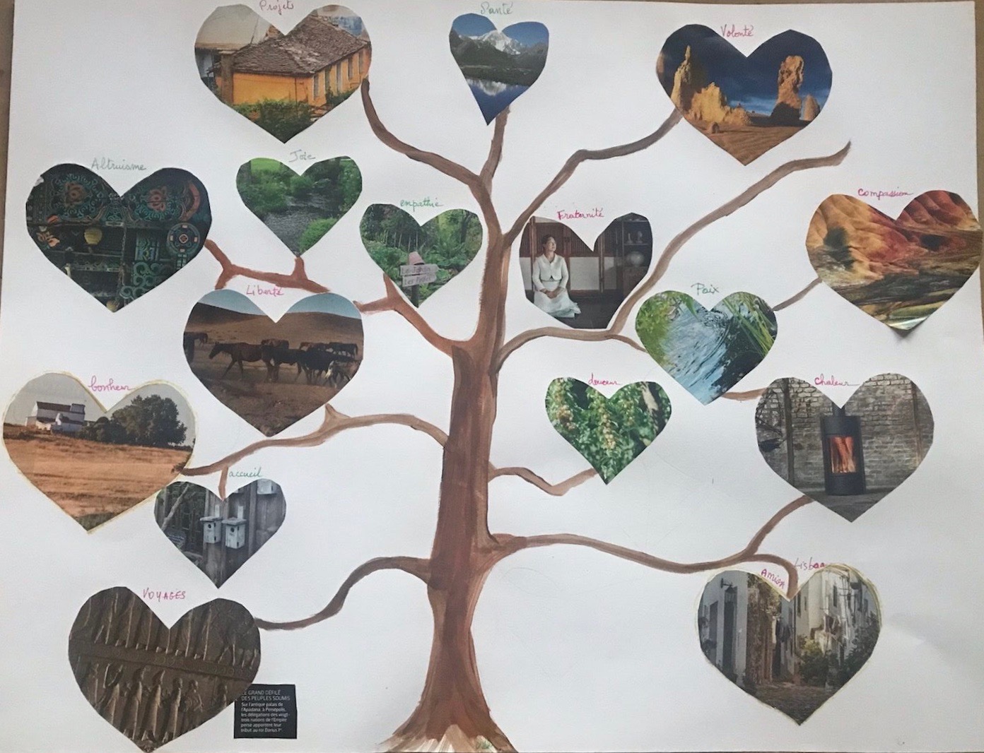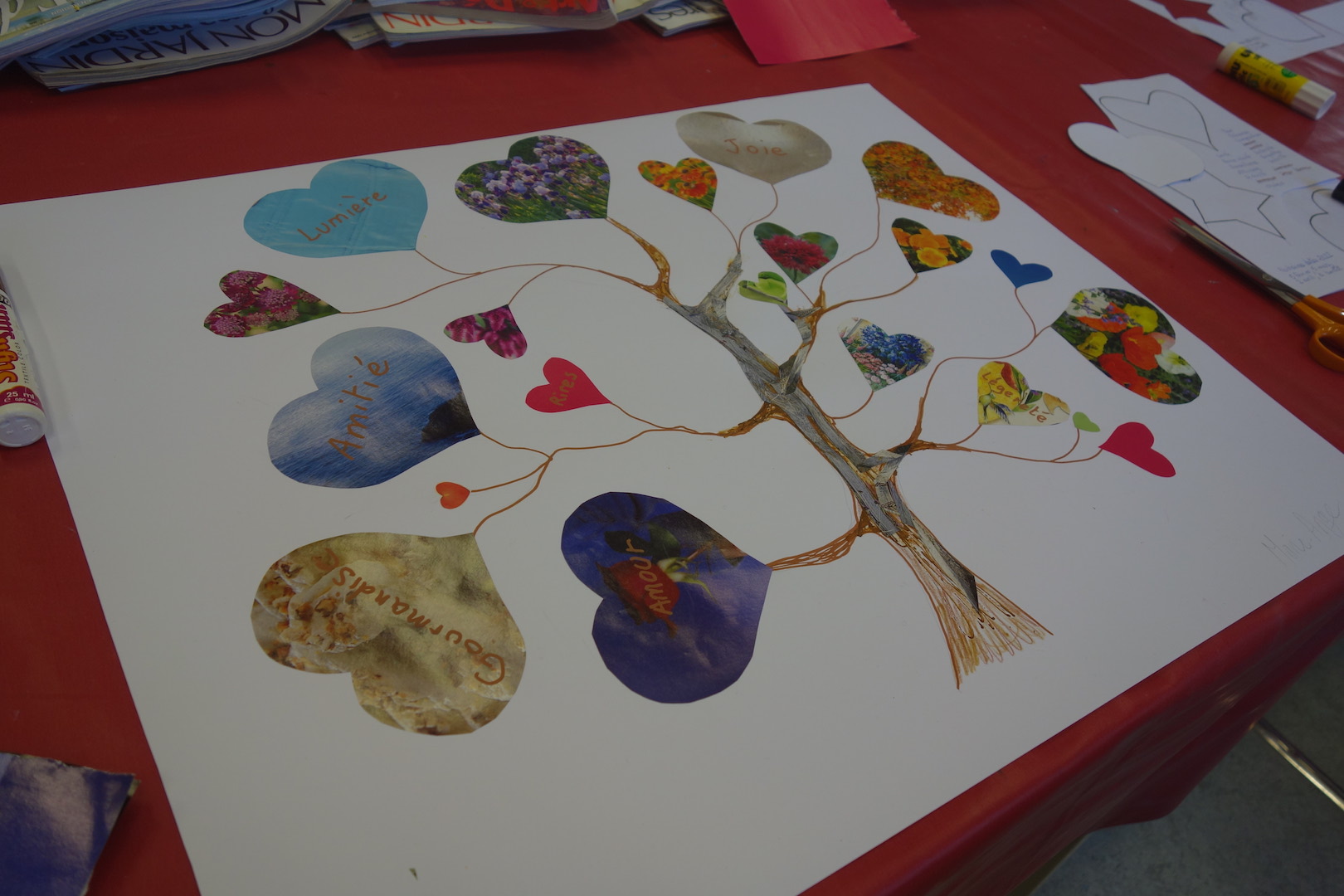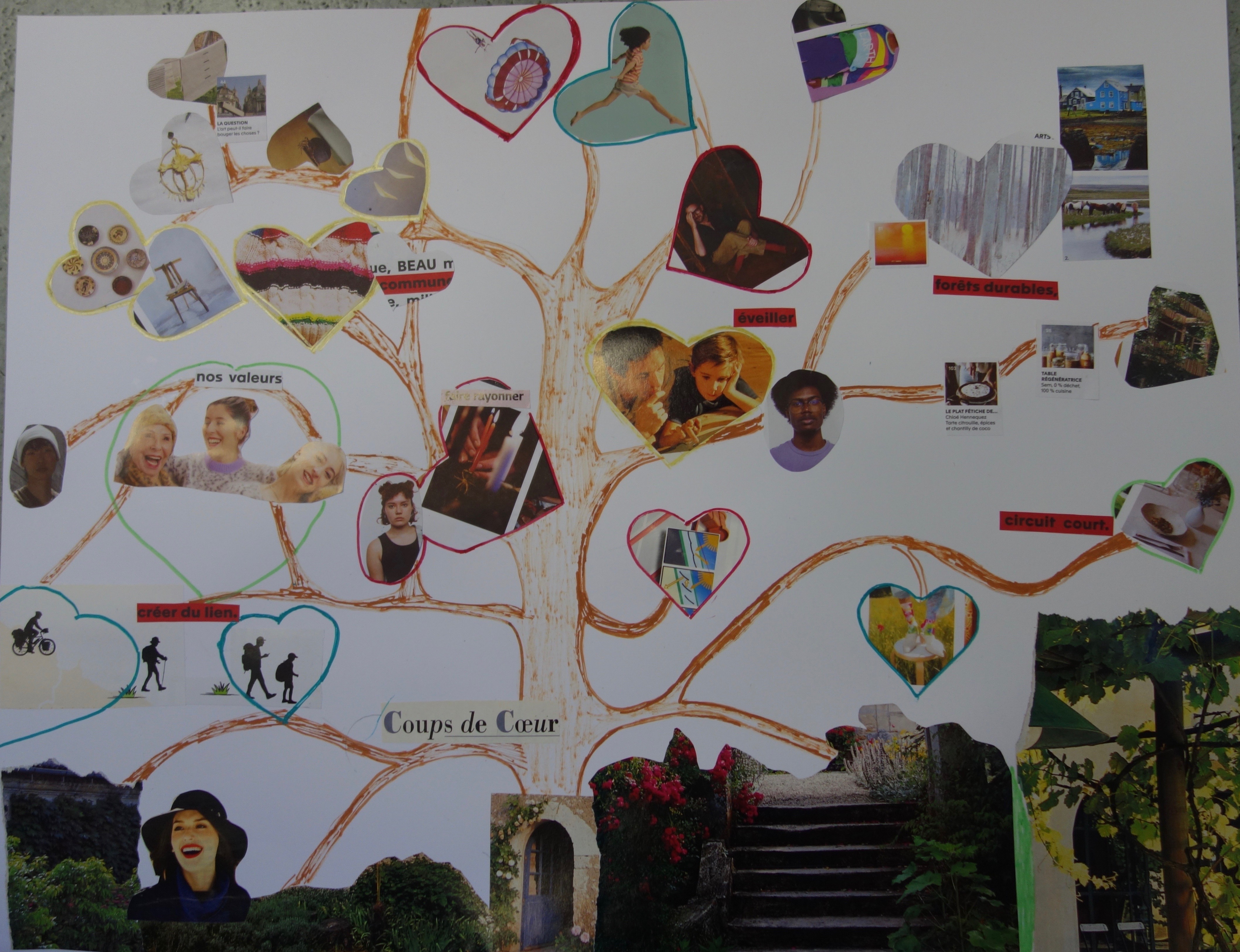 Réalisations du 04 février 2023 dont le thème était « choix d’images et mots à disposer dans deux grands coeurs