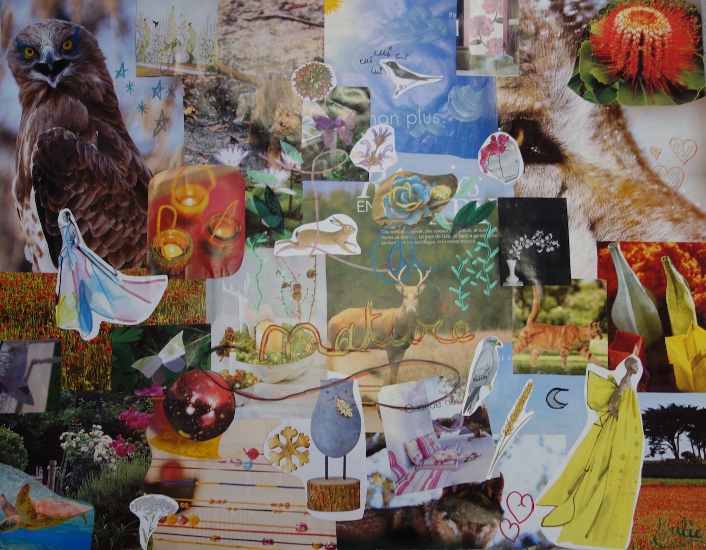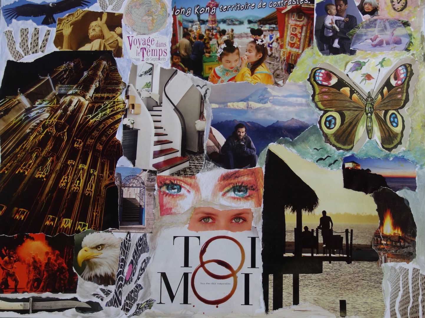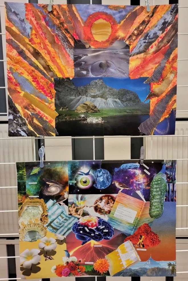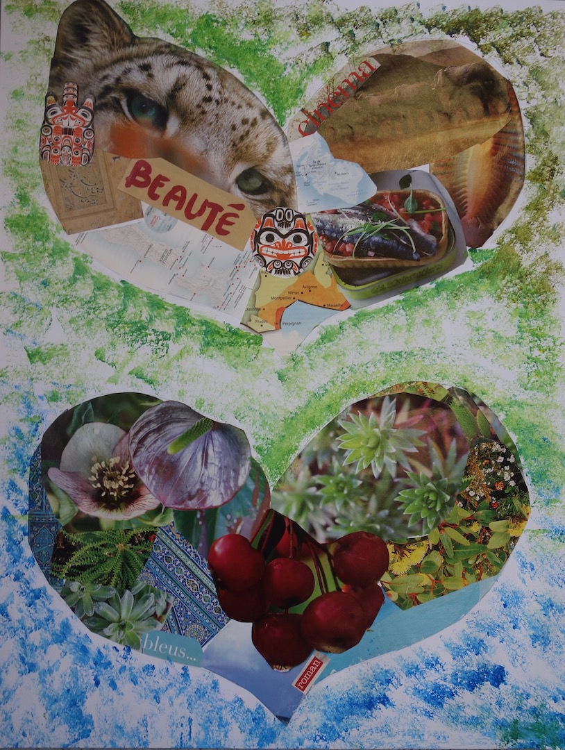 Réalisations du 04 février 2023 dont le thème était « choix d’images et mots à disposer dans deux grands coeurs