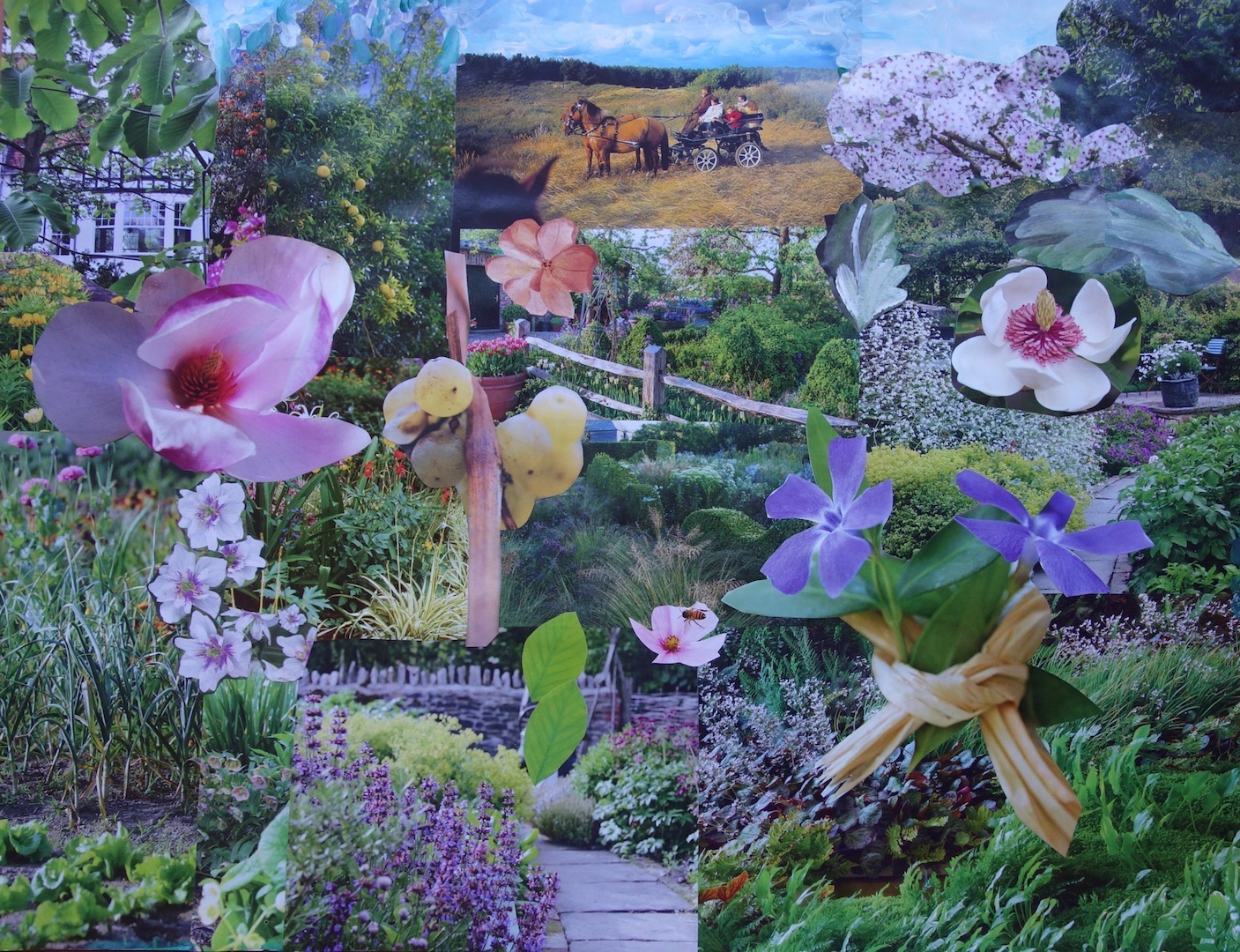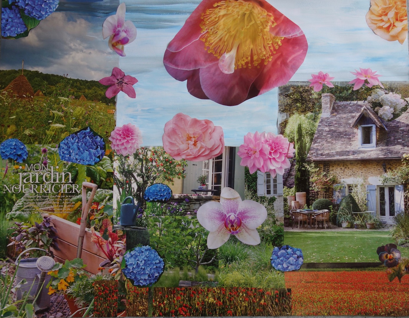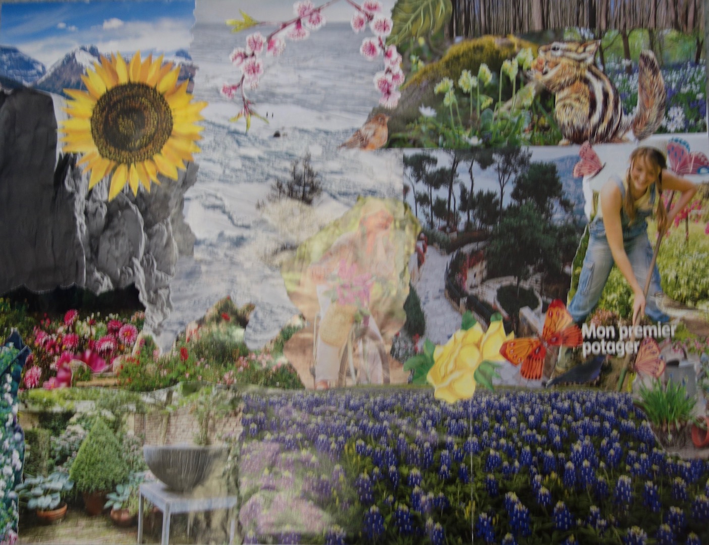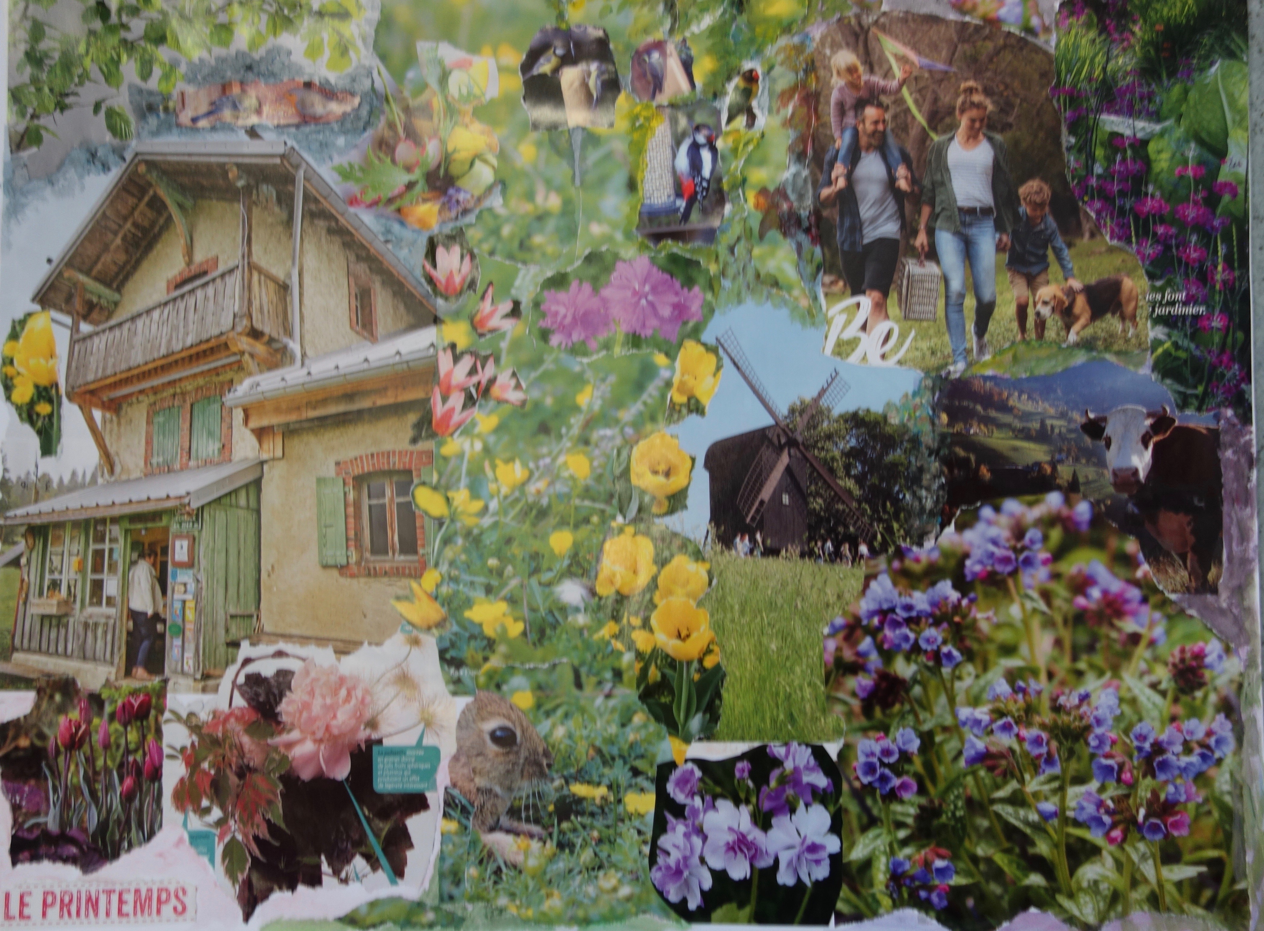 Travail du mois de mai, également sur le thème du Printemps (chanson de Michel Fugain) – 2 jeunes enfants ont rejoint le groupe des aînés