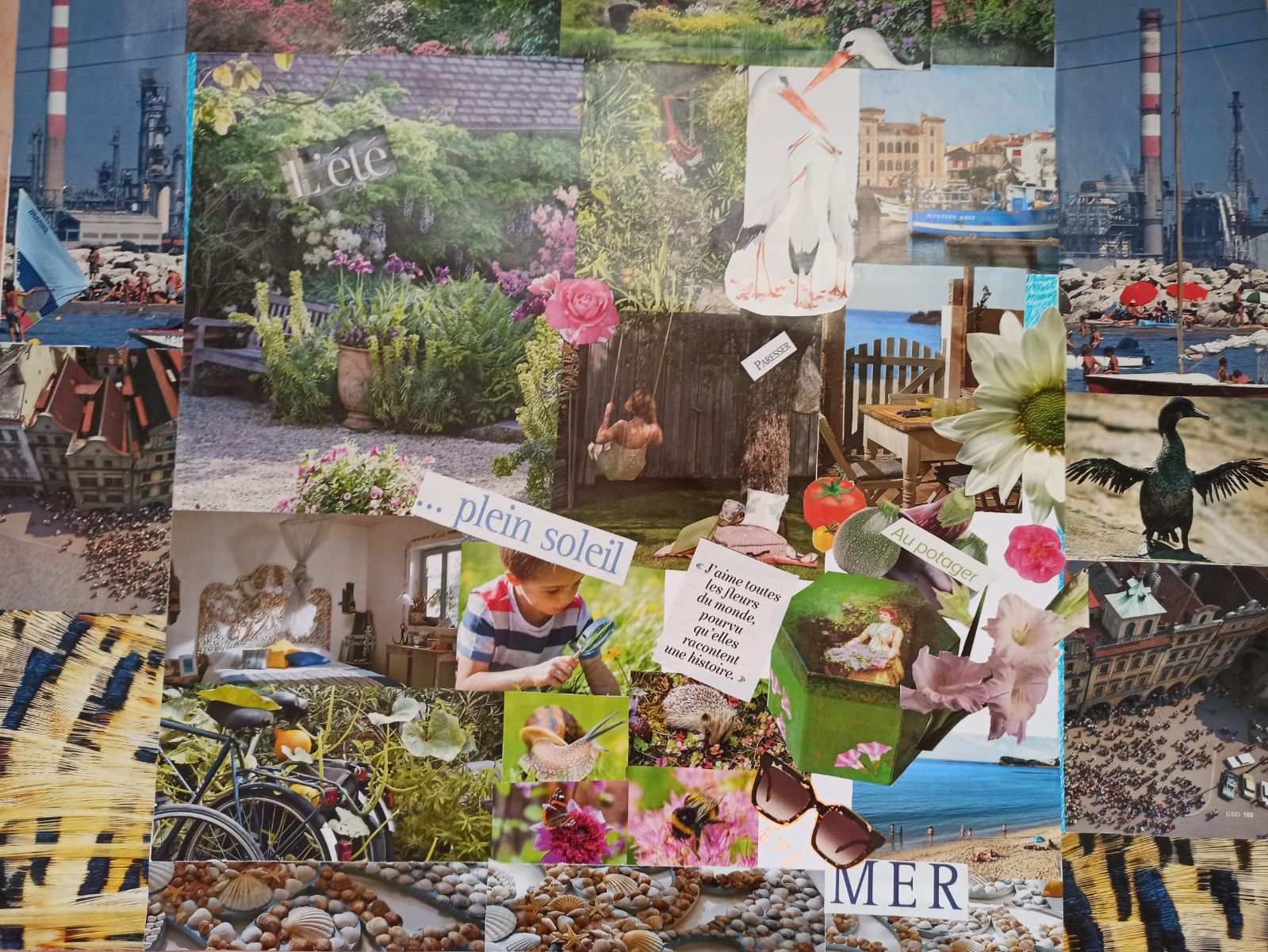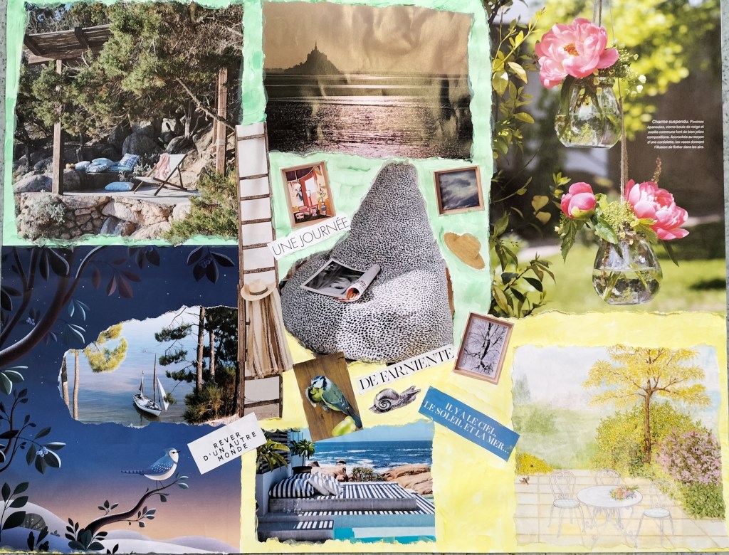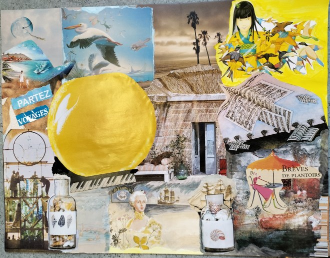 Premier atelier « art et collage » pour cette rentrée de septembre 2022 sur le thème : l’été, poème de Théodore de Banville.