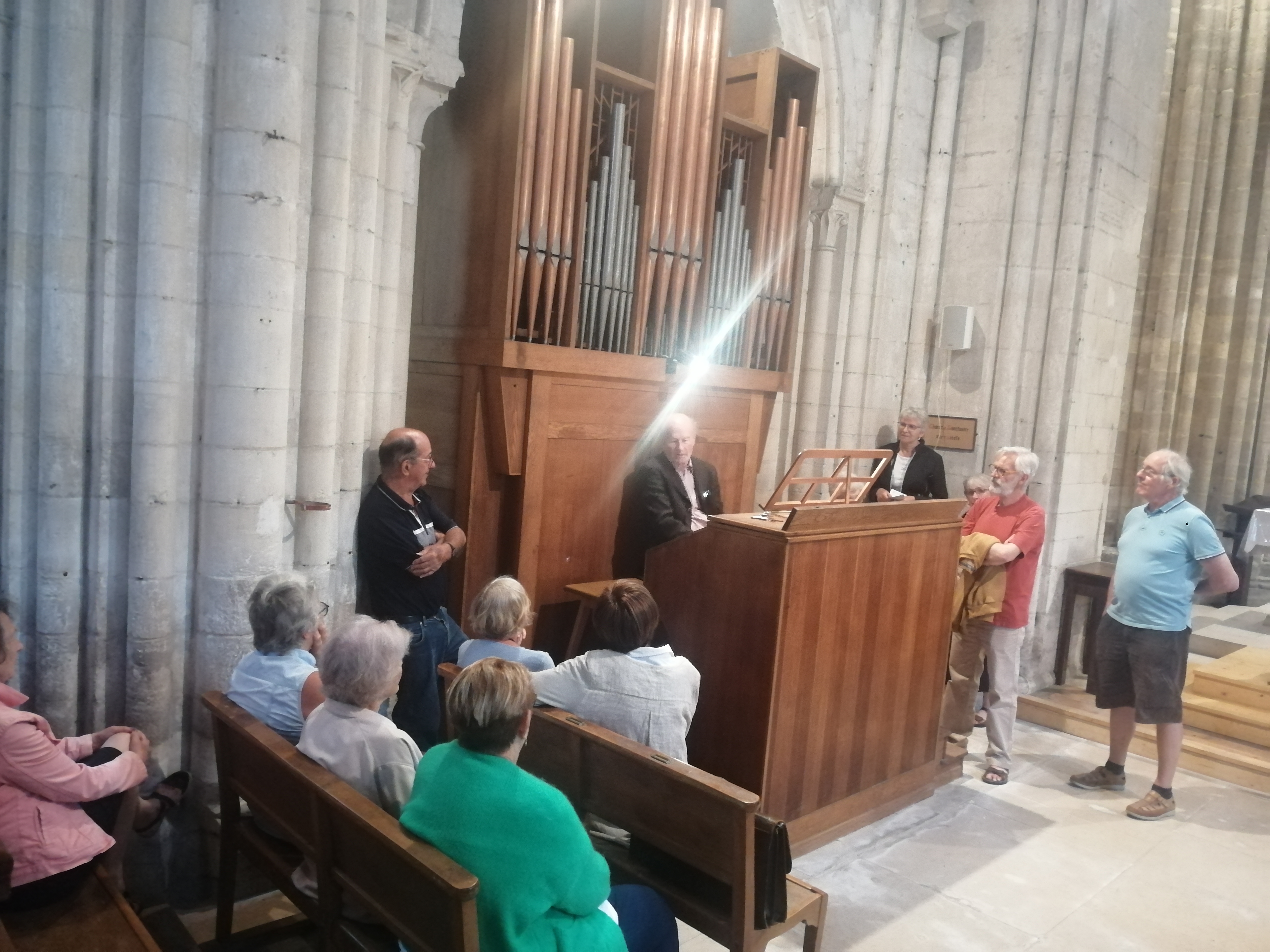 La plupart des participants ont eu la chance de gravir les marches pour admirer le buffet du grand orgue ainsi que la mécanique de soufflerie et les différentes parties de la console. Il a été constaté que les différentes parties, tuyaux, pédales, tirasses, tirants de jeux, fonctionnaient à merveille en écoutant Jean Legoupil jouer.